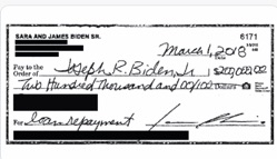 Now his words have come back to bite him. As the Daily Mail reported, Republicans today unveiled a $200,000 personal check from James Biden, one Biden’s younger brothers, to Old Joe…